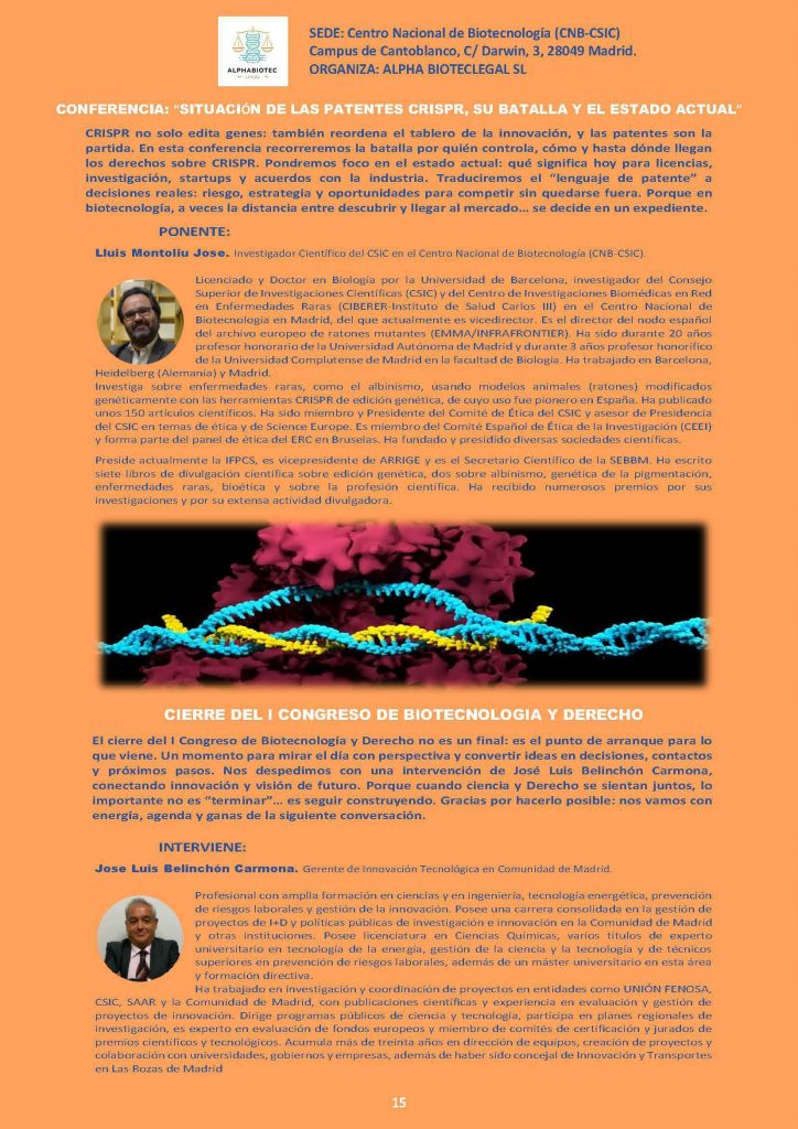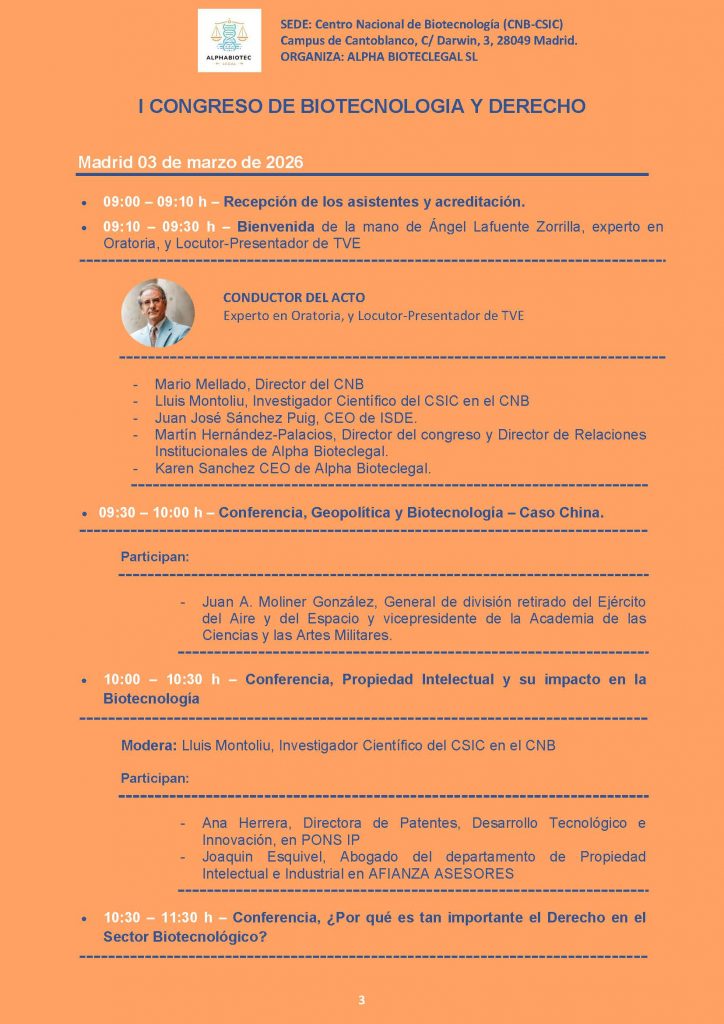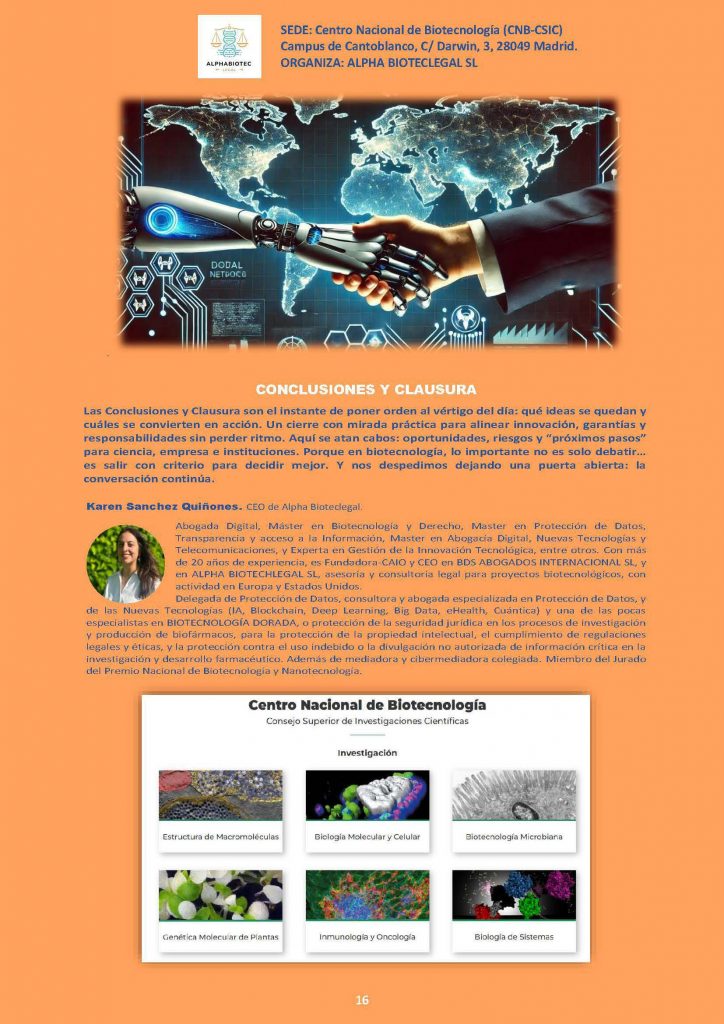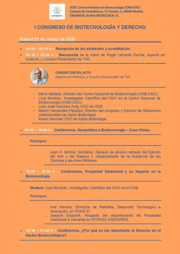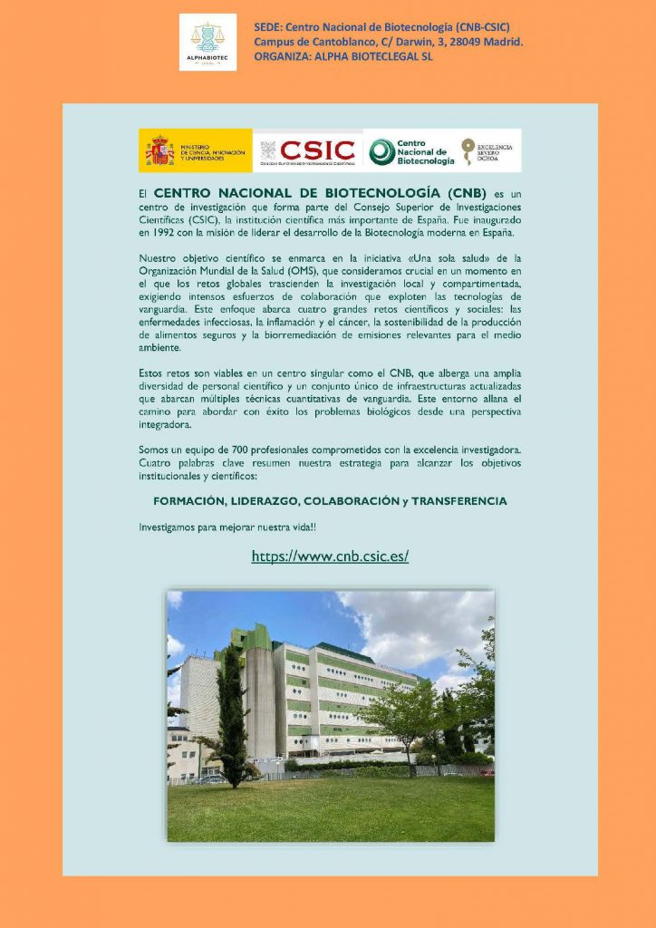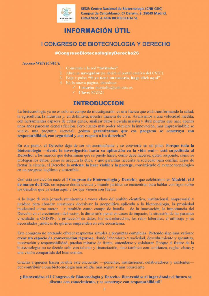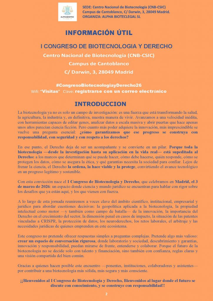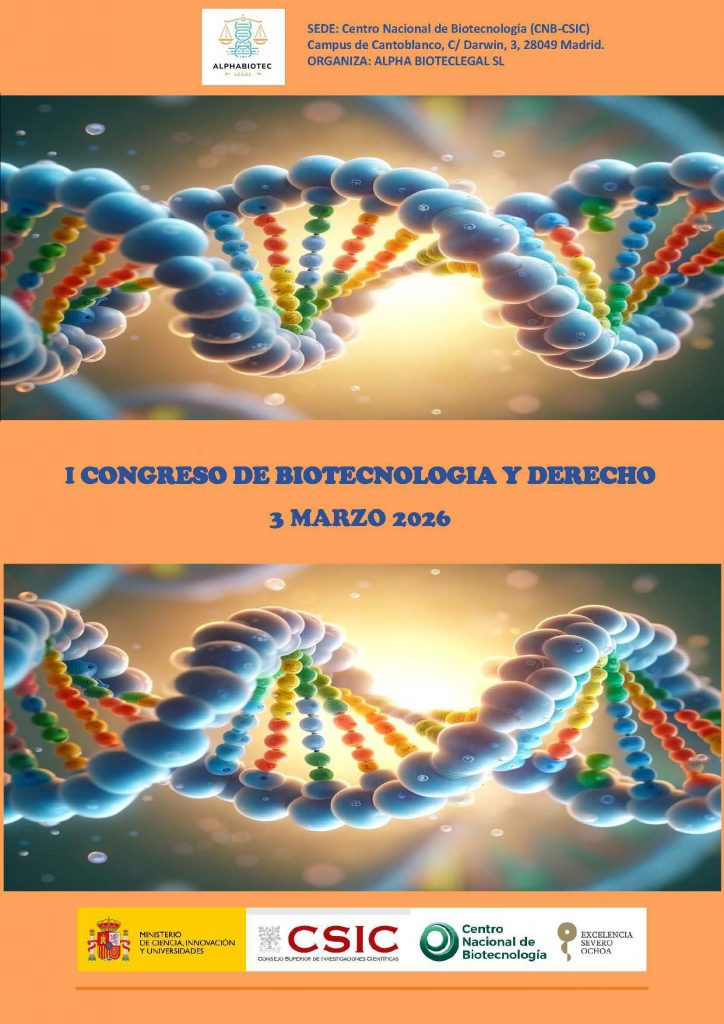 Inscripciones abiertas: no dejes pasar la oportunidad de formar parte del I Congreso de Biotecnología y Derecho. El 3 de marzo de 2026 nos vemos en el Centro Nacional de Biotecnología (CNB‑CSIC), Madrid, para una jornada intensa de conocimiento, debate y networking donde ciencia y derecho se sientan a la misma mesa. Inscríbete y súmate al #CongresoBiotecnologiayDerecho26.