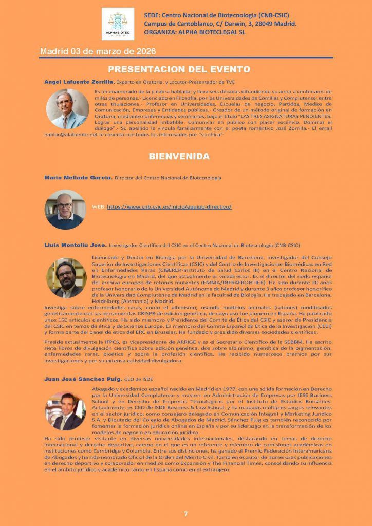 𝗕𝗶𝗲𝗻𝘃𝗲𝗻𝗶𝗱𝗮 𝗶𝗻𝘀𝘁𝗶𝘁𝘂𝗰𝗶𝗼𝗻𝗮𝗹 con Mario Mellado, Lluis Montoliu, Juan José Sánchez Puig, Martín Hernández-Palacios y Karen Sánchez Quiñones: una apertura con visión (y con la ciencia y el Derecho alineados desde el minuto uno).