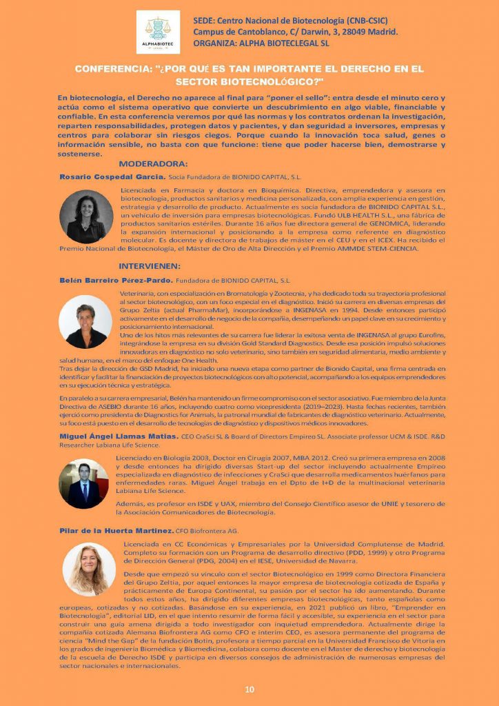 𝗣𝗼𝗿 𝗾𝘂é 𝗲𝗹 𝗗𝗲𝗿𝗲𝗰𝗵𝗼 𝗲𝘀 𝗰𝗹𝗮𝘃𝗲 𝗲𝗻 𝗲𝗹 𝘀𝗲𝗰𝘁𝗼𝗿 𝗯𝗶𝗼𝘁𝗲𝗰𝗵 moderada por Rosario Cospedal con Belén Barreiro, Miguel Ángel Llamas, Pilar de la Huerta y Alfonso Mª Pinto López: una conversación de “lo que nadie te cuenta” sobre crecimiento, inversión, riesgos y seguridad jurídica.