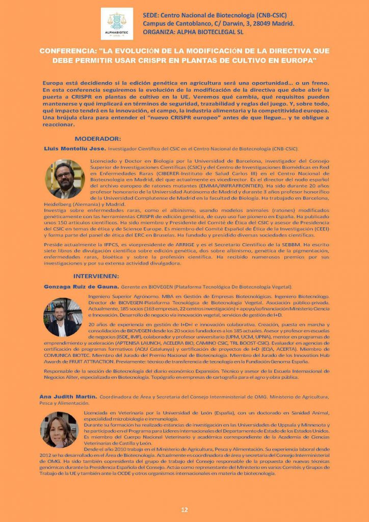 𝗖𝗥𝗜𝗦𝗣𝗥 𝗲𝗻 𝗽𝗹𝗮𝗻𝘁𝗮𝘀 𝗱𝗲 𝗰𝘂𝗹𝘁𝗶𝘃𝗼 𝗲𝗻 𝗘𝘂𝗿𝗼𝗽𝗮: 𝗲𝘃𝗼𝗹𝘂𝗰𝗶ó𝗻 𝗻𝗼𝗿𝗺𝗮𝘁𝗶𝘃𝗮 moderada por Lluis Montoliu con Gonzaga Ruiz de Gauna y Ana Judith Martín: qué cambia, qué se desbloquea y por qué importa para la biotech vegetal.